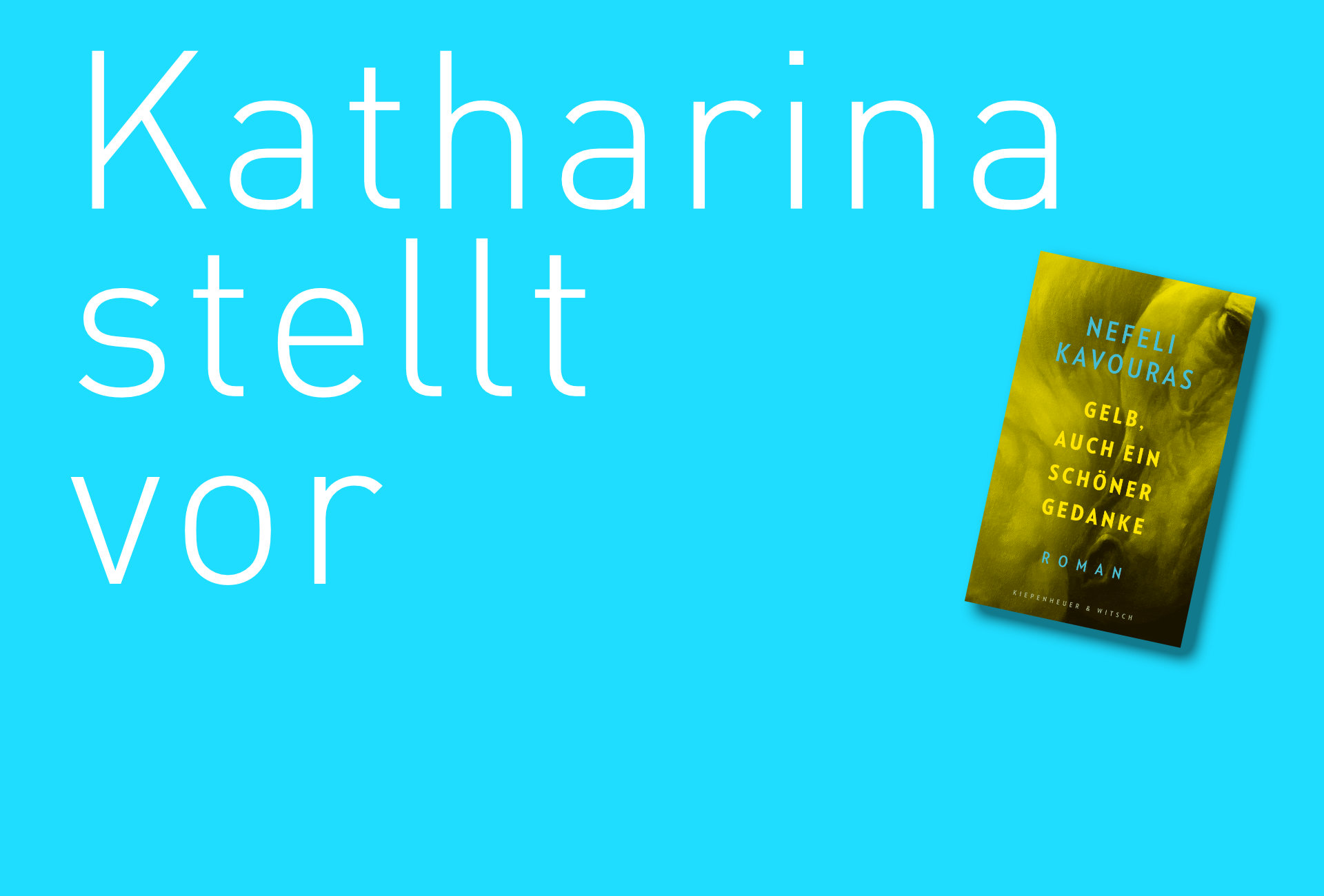 “Gelb, auch ein schöner Gedanke” von Nefeli Kavouras ist bei Kiepenheuer & Witsch erschienen. Das Buch können Sie ganz einfach und versandkostenfrei online hier, in der Buchhandlung unseres Vertrauens, bestellen! Mehr zu Katharina Martini erfahrenSie unter: www.katharinamartini.de oder bei Instagram unter katharina_liest vor.